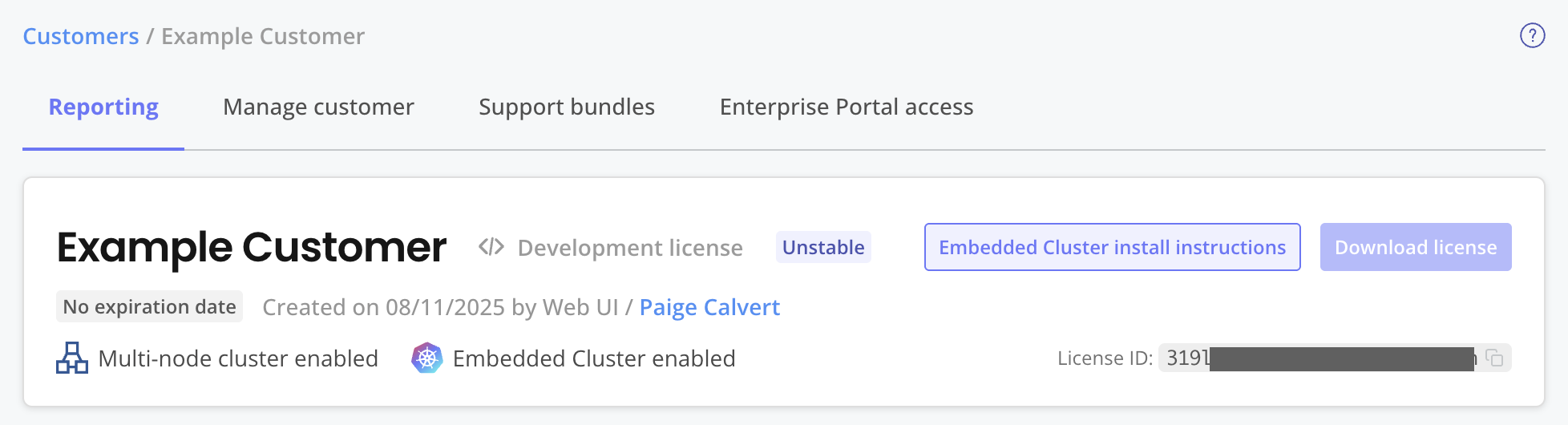 In the Vendor Portal, on the page for the customer that you created, click Embedded Cluster install instructions.